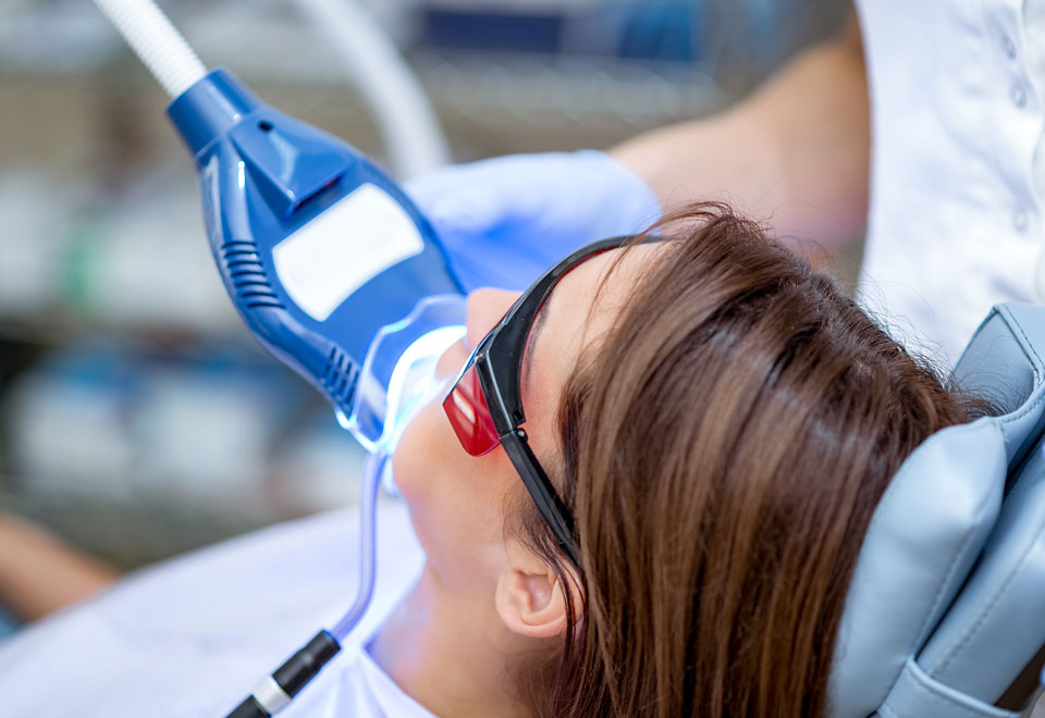 Beim professionellen Bleaching werden spezielle Gele auf die Zähne aufgetragen, die durch chemische Prozesse (Oxidation) Farbstoffe im Zahn neutralisieren und so die Zähne aufhellen. Wir bieten das Bleaching bei uns in der Praxis (In-Office-Bleaching) an.